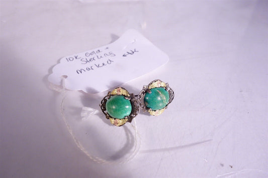 10K Gold & Sterling Earrings Vintage Jade