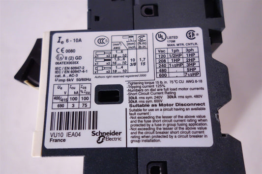 1x Schneider Electric GV2ME14 Motor Circuit Breaker 6-10A